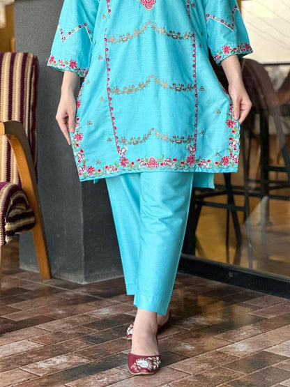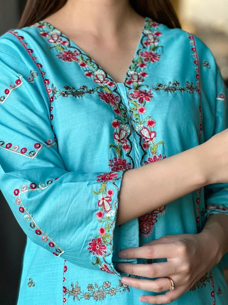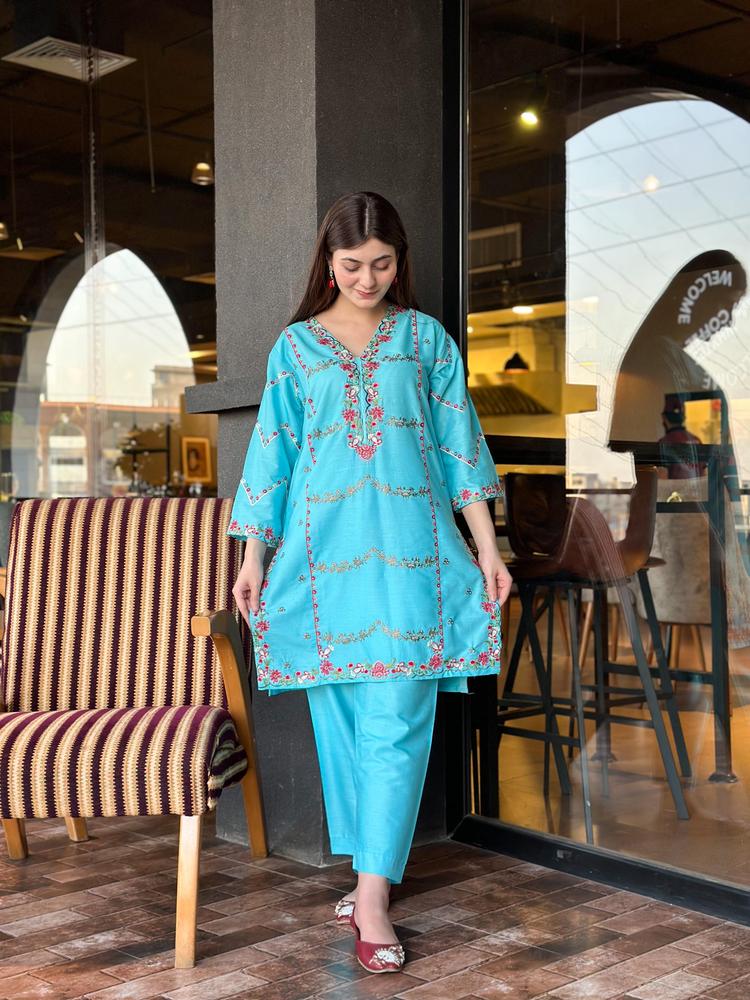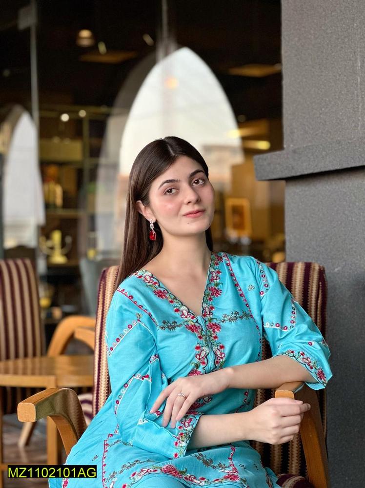 2 Pcs Women's Stitched Soft Cotton Embroidered Shirt and Trouser