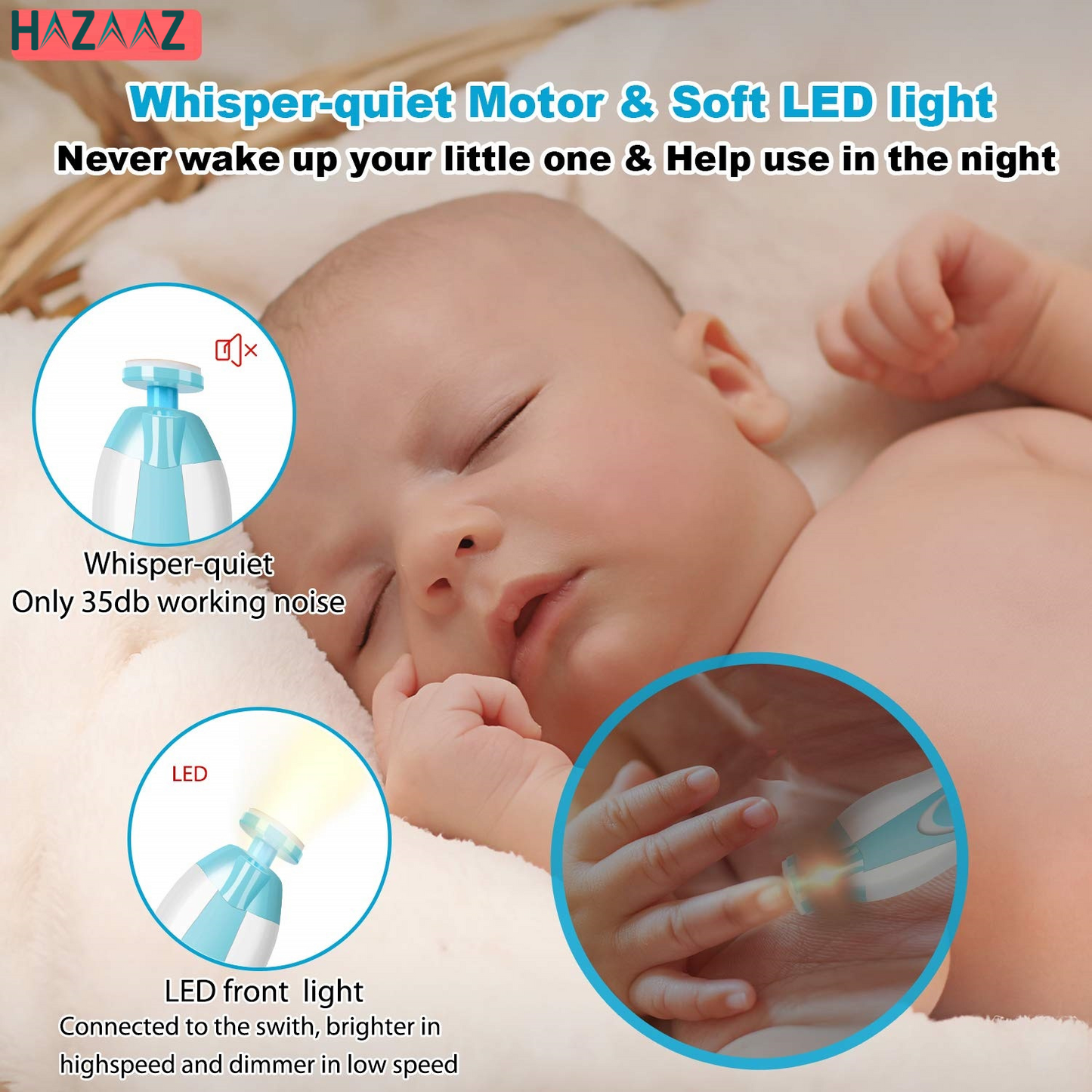 - Quiet operation: It equipped with a whisper-quiet motor and a front LED light, you can trim your baby’s nails when they are sleeping without causing any disturbance.