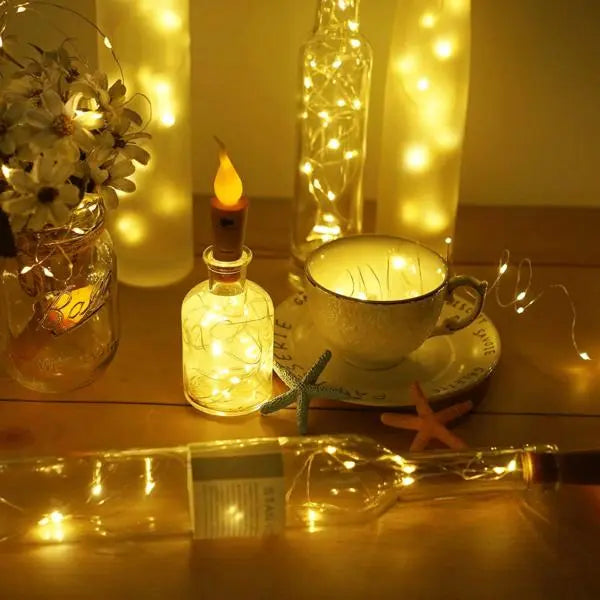 Candle Style Bottle Cork String Lights, candle flame and Led string will make a Swaying effect, perfect for Party, Wedding, Christmas, New Year, Halloween, Square, Garden, Indoor Decoration, Outdoor Decoration, and creating a perfect summer ambiance on your patio.